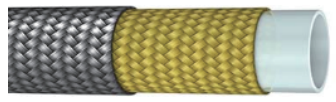 光滑的半透明PTFE(polytetrafluoroethylene聚四氟乙烯)無縫擠出工藝,擁有阻燃性,低滲透性,耐疲勞和耐化學品等多種特性的工業軟管。中層的凱夫拉編織層和外層的緊致不銹鋼編織網,使軟管擁有極高的承壓能力。