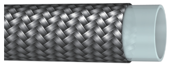 光滑的半透明PTFE(polytetrafluoroethylene聚四氟乙烯)無縫擠出工藝,擁有阻燃性,低滲透性,耐疲勞和耐化學品等多種特性的工業軟管。外層為緊致不銹鋼編織網,使軟管擁有較高承壓能力。